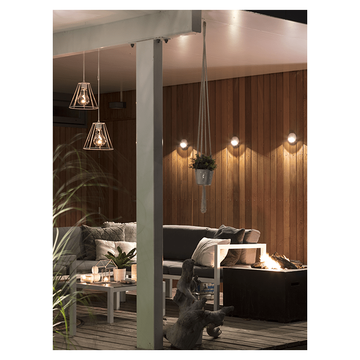 Wall fixture BLINK emits a warm white bundled light downward. Suitable for mounting on a wall or fence. BLINK is available in 3 different colors.