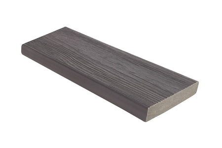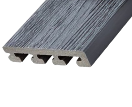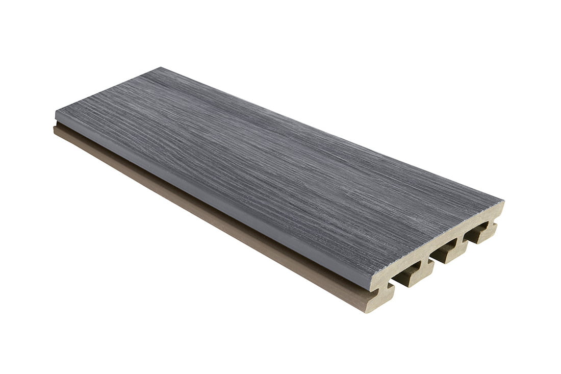 Fortress Cape Town Grey is a caped composite decking belonging to the Infinity I-series. The boards are offered in Starter (one solid shoulder and one grooved shoulder) and Grooved profiles, each 5.35 inches wide. The Grooved profiles are recommended for main decking installations, while the Starter profiles are suitable for deck picture frames, stairs, and other areas where the decking boards' shoulder is visible.